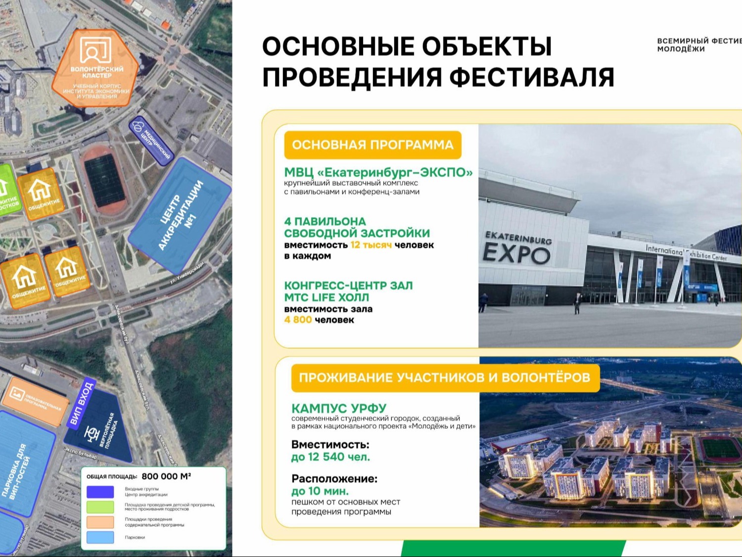 Основными площадками проведения фестиваля в Екатеринбурге выступят кампус Уральского федерального университета и международный выставочный центр «Екатеринбург-Экспо».